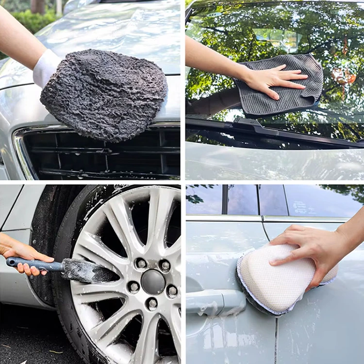 Klaaside ja akende puhastus: Sisaldab spetsiaalseid tööriistu tuuleklaaside, küljepeeglite ja akende kristallselge viimistluse jaoks.