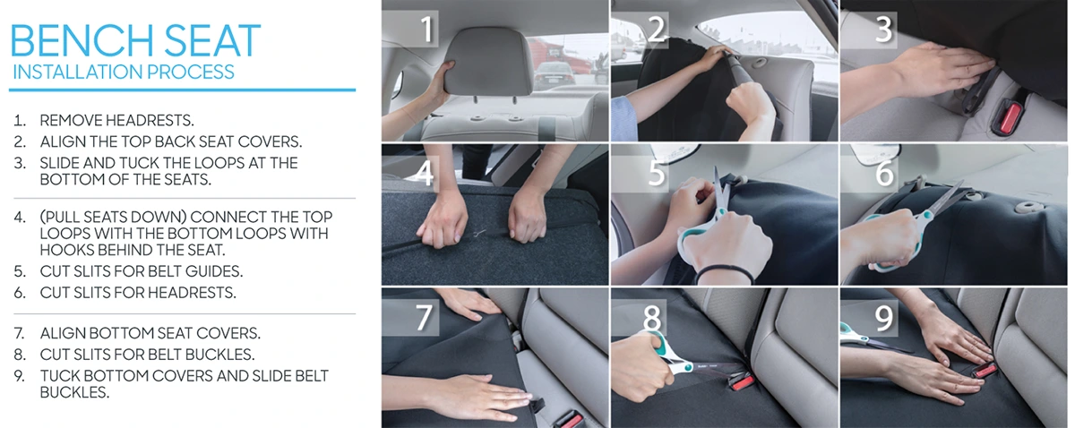 Vastupidav kaitse: kvaliteetsed materjalid peavad vastu mustusele, lekkimisele ja kulumisele, säilitades originaalseadmete tootja istmed ja sõiduki edasimüügiväärtuse.