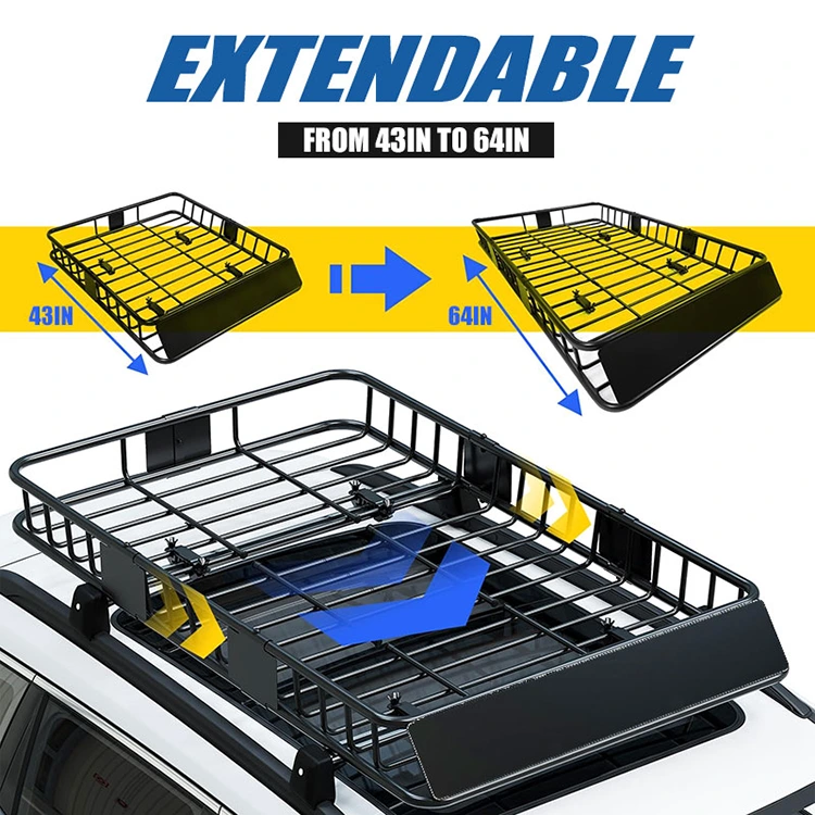 Roof Rack Carrier Basket on vastupidav ja laiendatav hoiulahendus sõidukile. See mahutab kindlalt pagasit ja varustust, mis sobib suurepäraselt maanteel sõitmiseks ja välitingimustes kasutamiseks. Valmistatud roostevastase kattega ülitugevast terasest. Konkurentsivõimeline katuseraami kanduri korvi hind on saadaval nõudmisel.