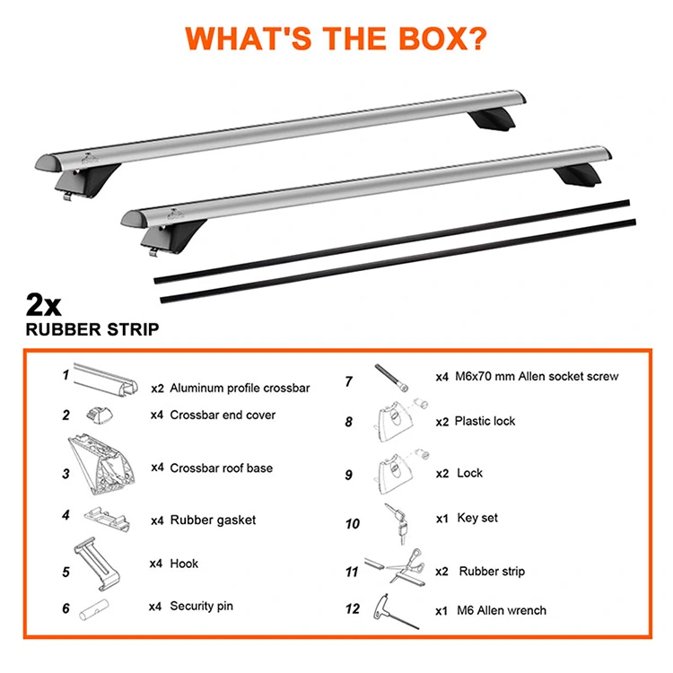 Need tasapinnaliste külgsiinidega sõidukite jaoks mõeldud katuseraami ristlatid pakuvad tugevat platvormi pagasi, jalgrataste või matkavarustuse transportimiseks. 14 kg kaaluv kerge konstruktsioon ühendab endas korrosioonikindla alumiiniumisulami ja löögikindla plasti, tagades vastupidavuse. Lisatarvikute hulka kuuluvad 2 võtit, kuuskantvõti, kasutusjuhend ja PVC riba kiireks paigaldamiseks.