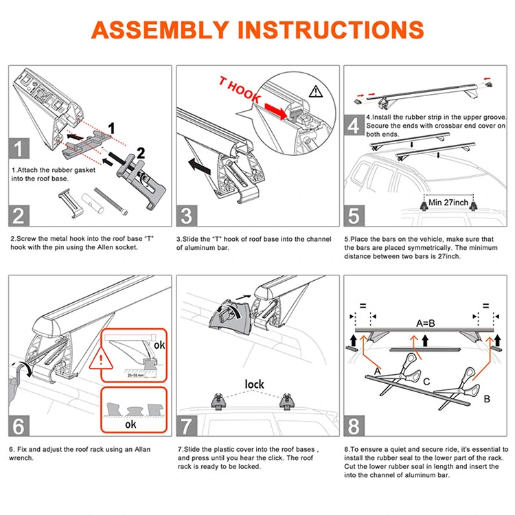 Neid katuseraami ristvardaid on lihtne paigaldada: kaasas kuuskantvõti 10-minutiliseks seadistamiseks; juhend koos samm-sammuliste illustratsioonidega.