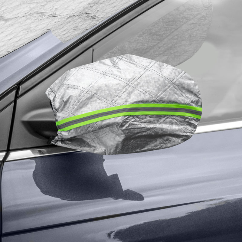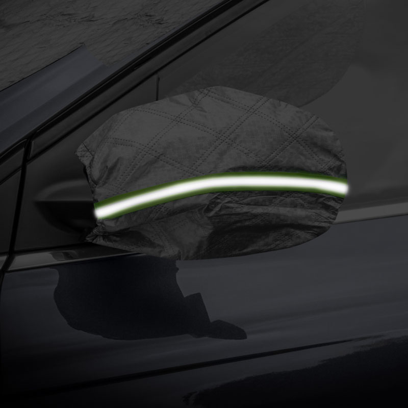 Lumekindla autokatte turvaelemendid: peeglitaskutel on helkurribad, mis muudavad teie auto pimeda või lumise ilmaga paremini nähtavaks, vähendades sellega parklates riske.