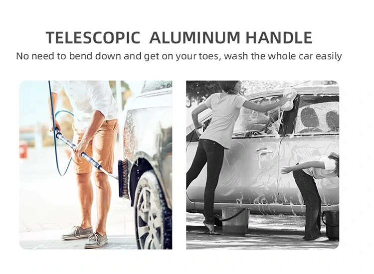 Teleskoopautopesumop, mida nimetatakse veevooluharjaks, muudab auto pesemise lihtsamaks ja tõhusamaks. Pole vaja kummarduda ega veeämbrit kaasas kanda – ühendage voolik käepideme ülaosaga ja vesi voolab otse läbi harja. Alumiiniumist teleskoopkäepide ulatub kõrgetele aladele ja selle saab auto pindade ja akende lähipuhastamiseks täielikult eemaldada. Käepide pöörleb ka 180 kraadi, mis võimaldab teil parema katvuse ja mugavuse huvides reguleerida puhastusnurka.